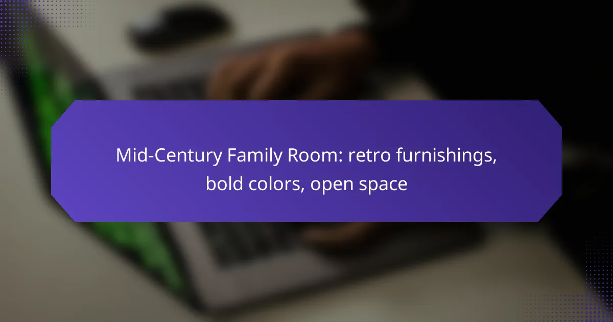 To create a mid-century family room, focus on retro furnishings that embody bold colors and clean lines. Key pieces include iconic sofas, vintage coffee tables, classic armchairs, and unique lighting fixtures that enhance the open space.
